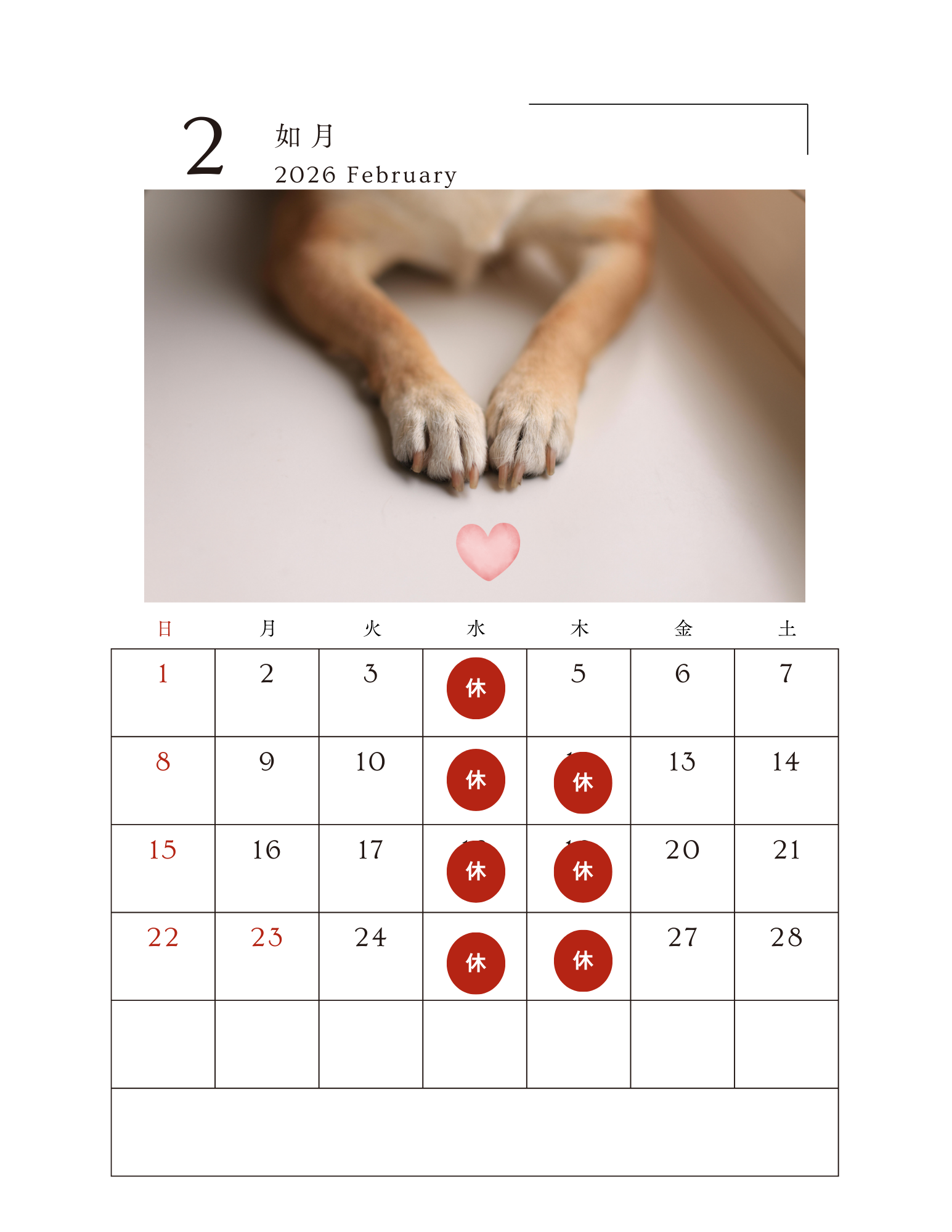 ○2月のお休み○